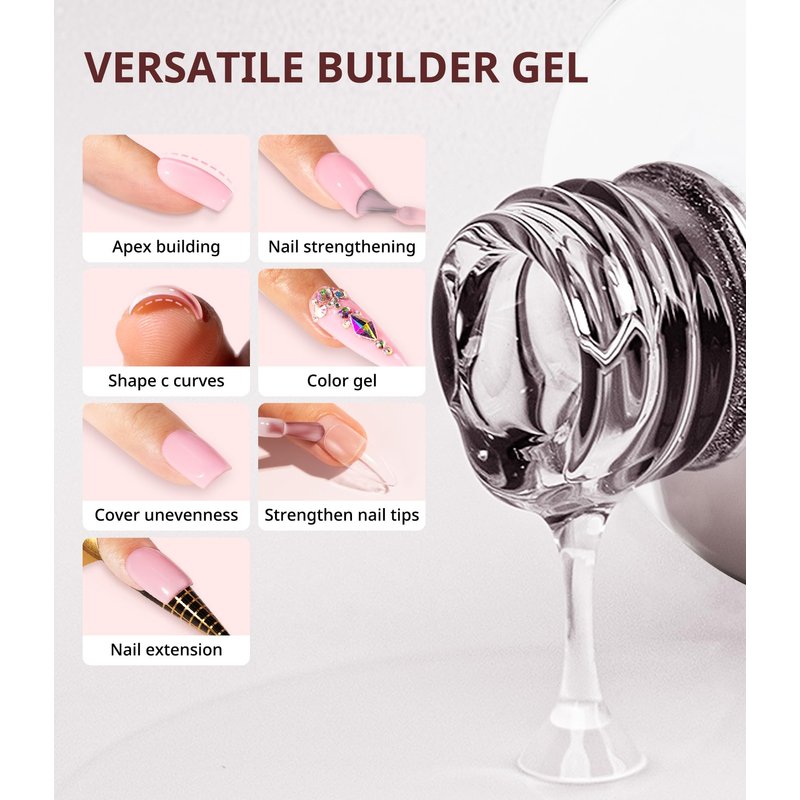 - Professional Quality: Achieve salon-quality results at home with our Builder Gel. Cure under UV/LED lamp for 60-90s for a quick, long-lasting finish.Tips:Always perform a skin test before use to ensure compatibility and contact us anytime for support