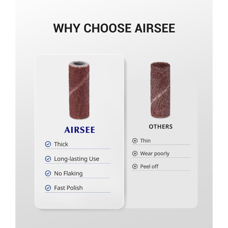 - Multifunctional: AIRESEE nail file sanding bands set can accomplish diversified professional jobs, such as engraving, grinding, routing, sanding, smoothing and polishing for all nail arts as well as cuticle removal. Disposables, clean and hygienic.