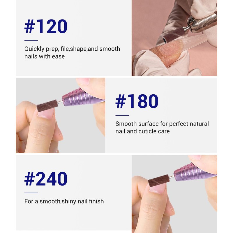 - Superior Nail Sanding Bands Set: High hardness, durable, and abrasion-resistant, excellent heat dissipation. Professional e file nail drill bits sand bands maintain integrity during use without falling apart. Suitable for most 3/32" shank nail drills