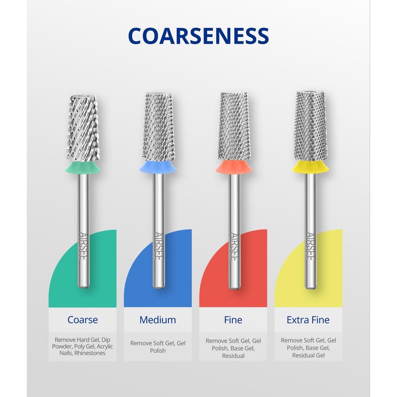 - Features: Brand: AIRSEE; Quantity: 1 Piece; Color: Silver; Coarseness: Fine; Shank: 3/32"; Direction: Left Hand & Right Hand; User: Experienced, Nail Tech