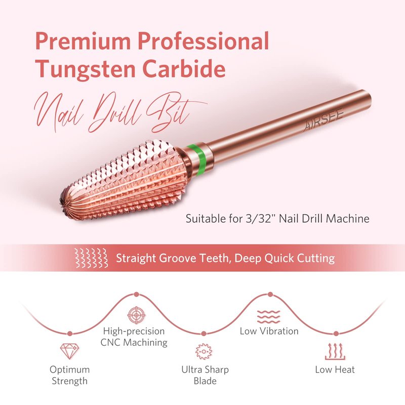 - [Features] Brand: AIRSEE | Quantity: 1Piece | Color: Rose Gold | Coarseness: Coarse | Shank: 3/32" | Direction: Right Hand Only | User: Experienced, Nail Tech, Salon