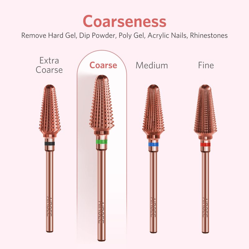 AIRSEE Tungsten Carbide Acrylic Nail Drill Bit Efile Electric File Machine Head Tips for Manicure Polishing Fast Remove Gel 3/32" Shank Right Hand Advanced Salon Tech Rose Gold Tornado Coarse-C