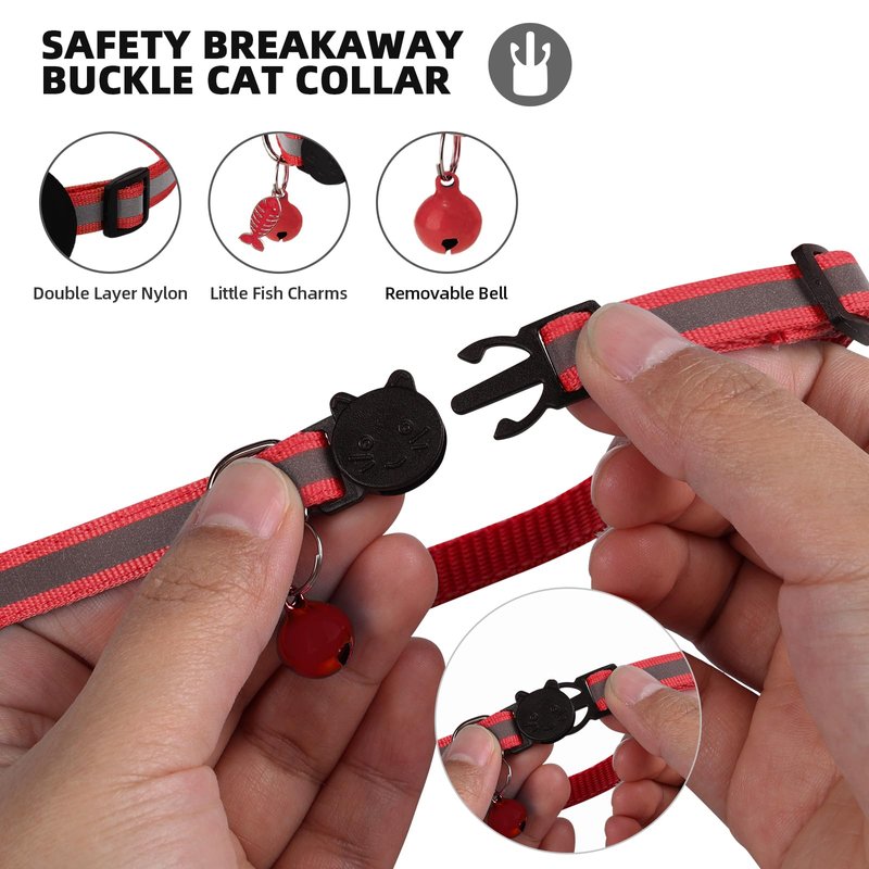 - Reflective Nylon Collar: Reflective nylon kitten collar with bell design makes your pets can be seen in dark environments. If your pets can't get used to the bell, it can be removed.