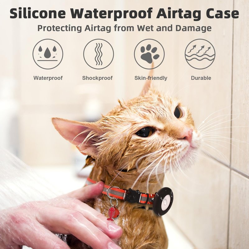 - Airtag Cat Collar Holder: The Airtag collar comes with a airtag case, it's waterproof and shocking-proof. Specially designed for cats and small animals' small collars, slide-on installed, no reaches from your pets.