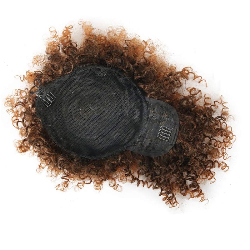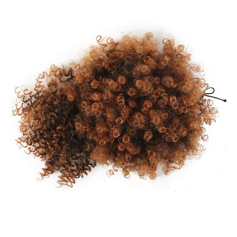 Aisaide Afro Puff Drawstring Ponytail for Black Women Short Afro Kinky Curly Ponytail Extension Bun with Bangs Clip in Hair Extensions Pineapple Synthetic Brown Ponytail with Two Clips(1B/30)