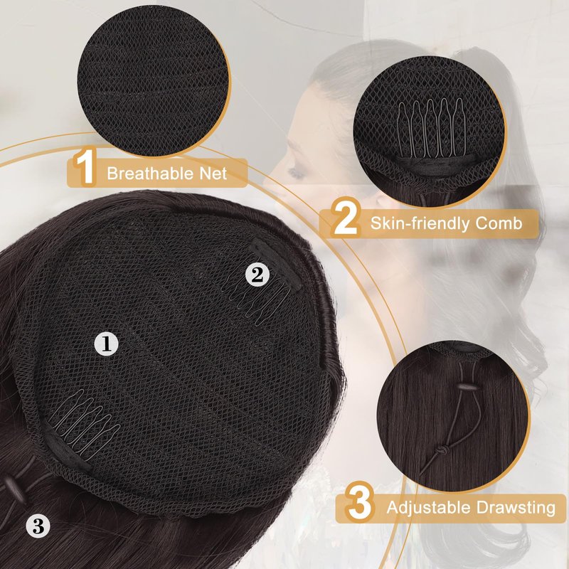 How to use:Simply tie your hair into a small bun, open the drawstring, place the ponytail extension on top, clip it into place, and tighten the drawstring to secure it. In just one easy step, you can add instant volume and length to your hair, effortlessly transforming your hairstyle. To prevent tangling, shake the ponytail extension after opening the package, use a spray bottle with a care solution to gently spritz the ponytail extension.