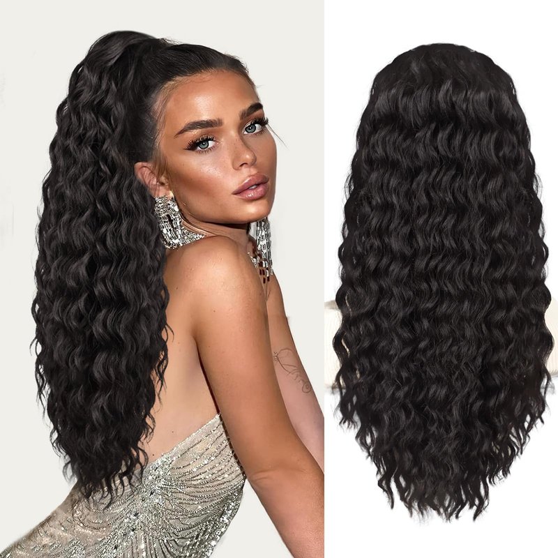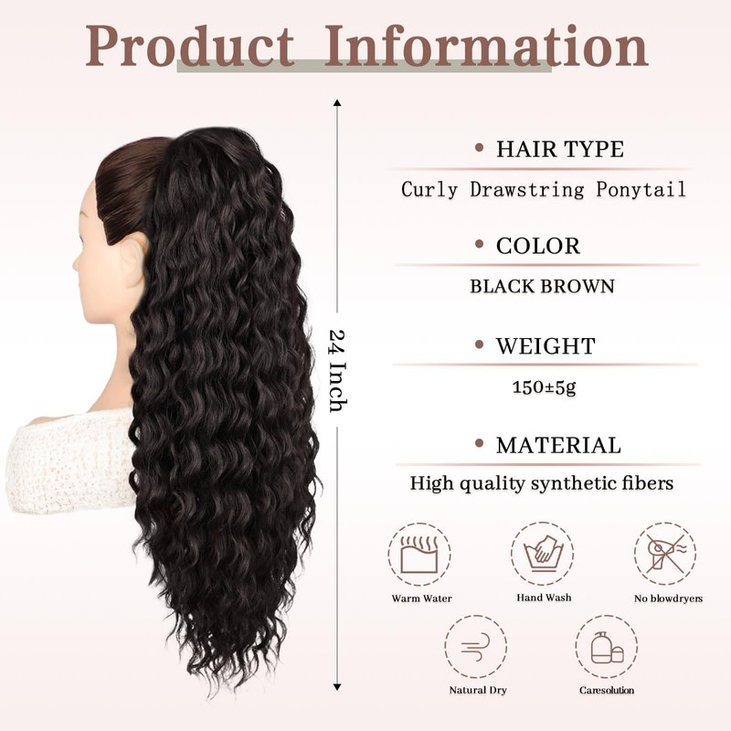 - 🍀 Realistic Curly Ponytail - This 24-inch synthetic drawstring ponytail extension offers a natural look and feel, made from premium synthetic fibers that blend seamlessly with your hair for a flawless, voluminous ponytail.