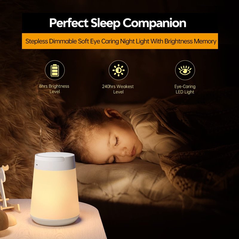 Aisutha Night Light for Kids, LED Touch Sensor Baby Night Light for Breastfeeding and Sleep Aid, Stepless Dimming Nursery Lamp Rechargeable Portable Night Light with Memory Function Bedside Light