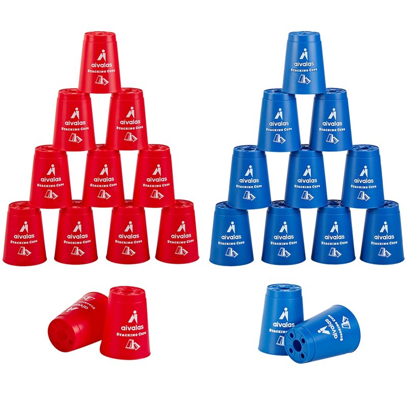 Aivalas Stack Cups, 24pcs Sports Stacking Cup Set Classic Stack Training Game Toys for Boys Girls Kids Stacking Cups with Carry Bag (Blue & Red)