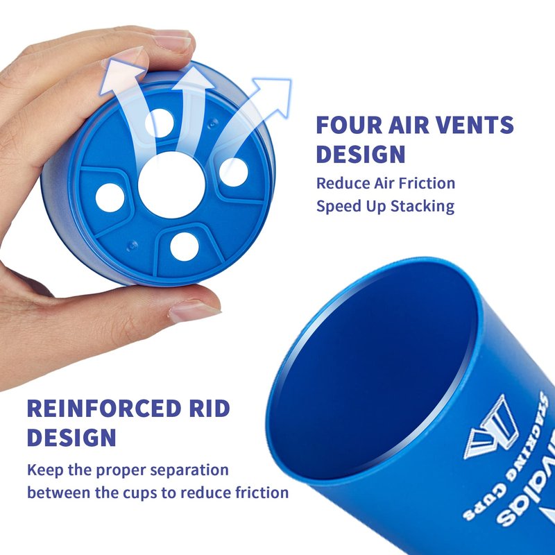 - Upgrade Design: Compared to others with only 3 small holes, our stacking cups has 1 large hole + 4 small holes at the bottom, , which can expedite the discharge of air to reduce air friction in rapid stacking and help you to compete with others from a vantage point!