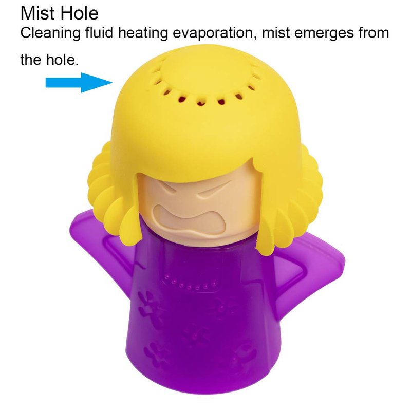 - The smart design of the holes on the angry momma head, let the steam comes out of mama's head to softens microwave dirt and stains for easier and thoroughly cleaning, makes your cleaning process way more fun.
