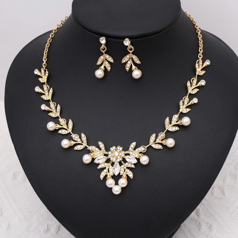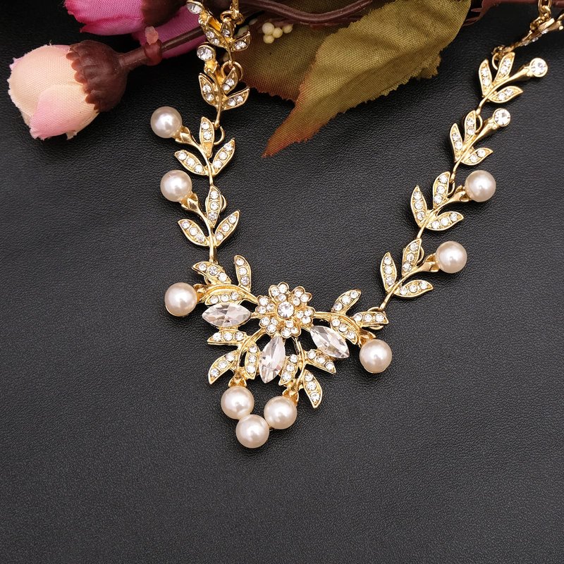 Aixiao Elegant Bridal Jewelry Set for Wedding Bride Bridesmaids Pearl Rhinestone Necklace Earrings Hair Side Comb Headpiece Accessories for Women (style B-gold)