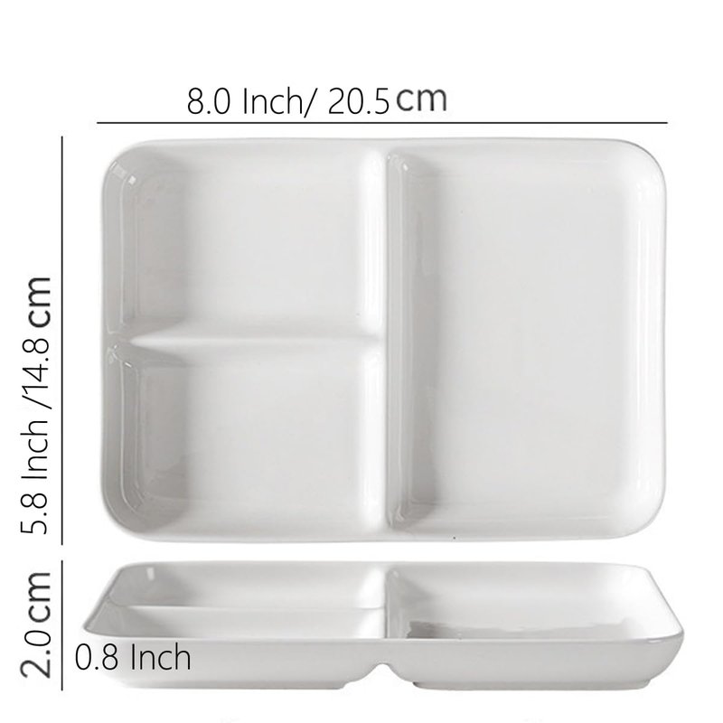 - White Porcelain divided plate - completely safe lunch dinner divided tray .the snack food plates are made of high quality Porcelain, which is safe and reliable to use, featuring nice stability which can be applied for a long time