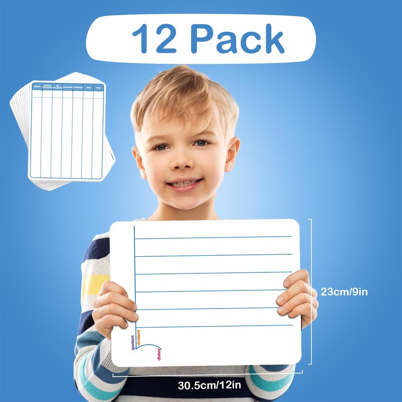 - 【12 Packs Dry Erase Boards】These dry erase white boards are perfect for practicing multi-digit division, multiplication, addition, and subtraction at school or home, providing an effective way to help children with their math homework, especially those in 2nd grade who are just starting to learn complicated math computation. With this as a base, students will go on to solve ever more complex math problems with great success!