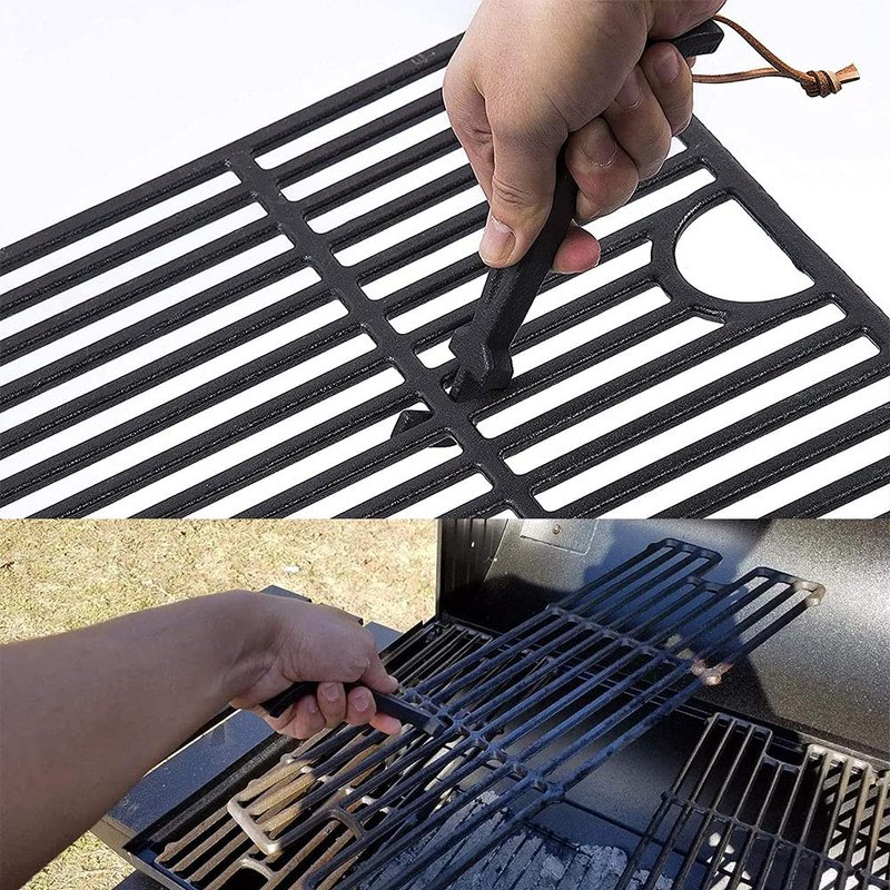 - Great metal material - The cast iron barbecue grid lifter can be used on gas and charcoal grills.The Barbecue Grid Lifter made of cast iron more tough and durable, not easily deformed or rust.