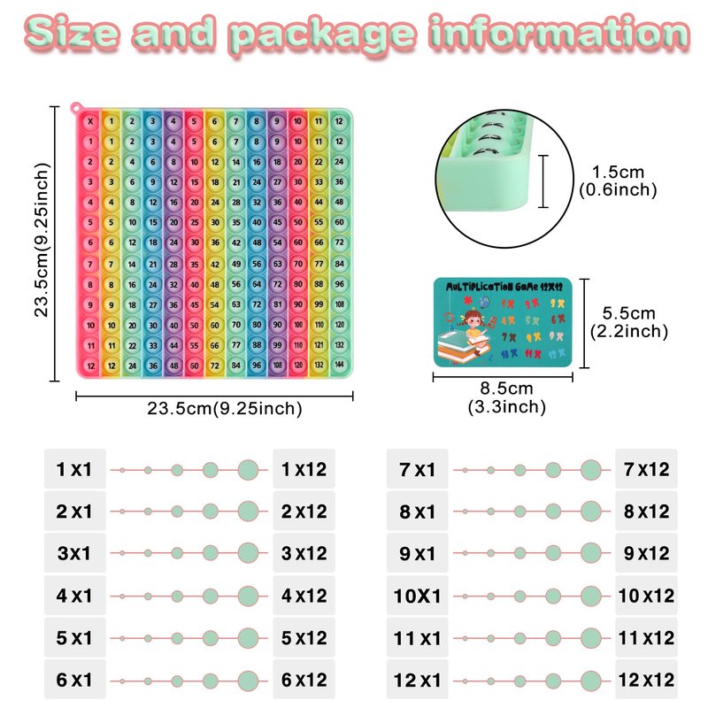 - 【Toy to relax your mind】Multiplication game Table This toy can effectively relieve anxiety and stress. Great for people with autism or stress, the pop of pressing bubbles can help relieve anxiety and restore mood. It is very helpful for adults and children to play together, more play and more fun.