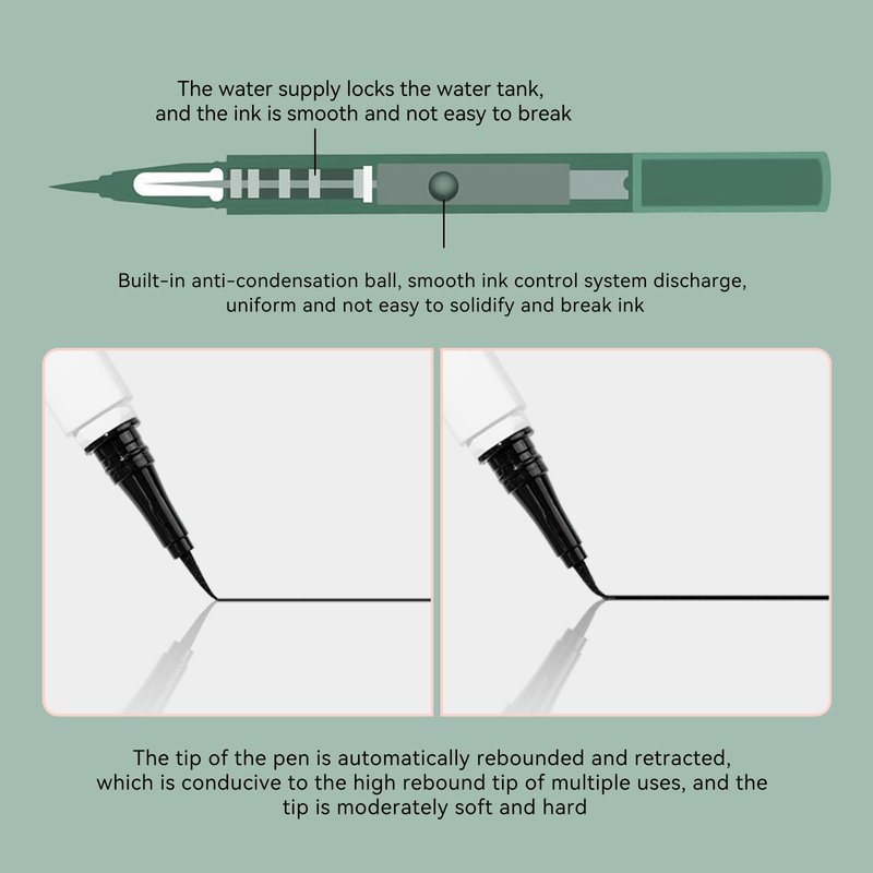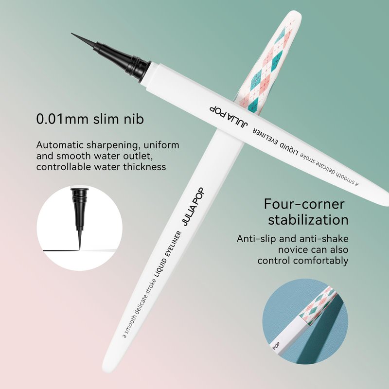 - EXTRA-FINE LIQUID EYELINER: Liquid eyeliner with 0.01mm slim nib. Automatic sharpening, uniform, and smooth water outlet, controllable water thickness, perfect for creating precise, high-pigment definition with stay-put power. Four-corner stabilization, anti-slip, and anti-shake, novices can also control it comfortably—no tugging or skipping.