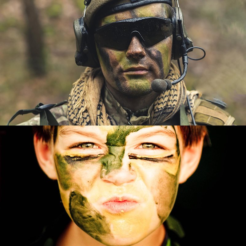 - 【CAMO FACE PAINT】A good face painting stick for lip-smacking, and face painting. Great choice as eye black football/baseball/softball, and create inspired makeup with this lip gloss cosmetics. Be a vampire, ghost, skeleton, witch, pumpkin, monster, or other creature, let your imagination run wild!