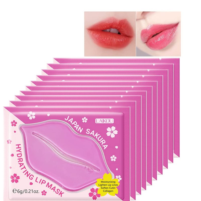 AKARY Sakura 10 Pieces Hydrating Lip Mask, Lip Sleep Mask Collagen Crystal Lip Care Gel Pads For Moisturizing, Minimize Fine Lines, Remove Dead Skin, Anti Chapped Pads Lip Mask (10)