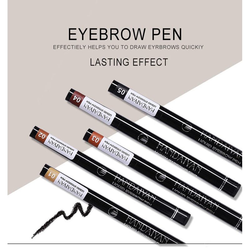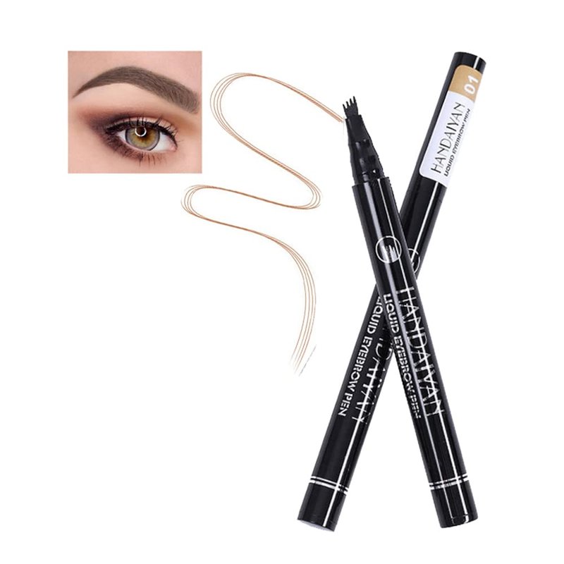 - 【Easy to Use 】Just swipe the brush over the tip of the pencil and apply to your eyebrows in short strokes from front to back. Angle fork tip across eyebrows and draw hair-like strokes from anchor to tail. Repeat as desired for added intensity. The four-fork lasting liquid eyebrow pen draws your eyebrows resembling 3D natural real hair.