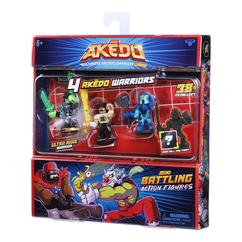 Akedo Ultimate Arcade Warriors - Warrior Collector 4 Pack - 3 Mini Battling Action Figures: Glitchblade, Chux Lee & Hyperlock and one Hidden