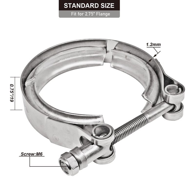Size & Package Include – 2.75inch(70mm), color: silver. This V-Band Flange Kit include one piece 304 stainless steel standard v-band clamp (With no Flanges).