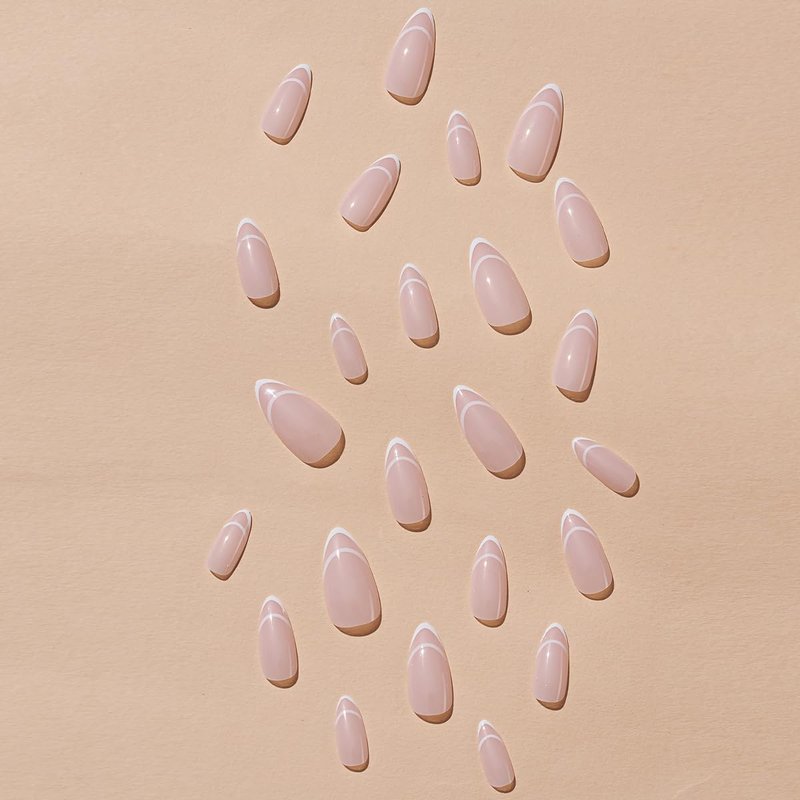 AkiliBIELY French Tip Press on Nails Almond Short White Pink Curve Fake Nails Women Cute Glue on Nails Acrylic Gel Fantasy Stick on Nails Classy False Nails For Wedding Birthday