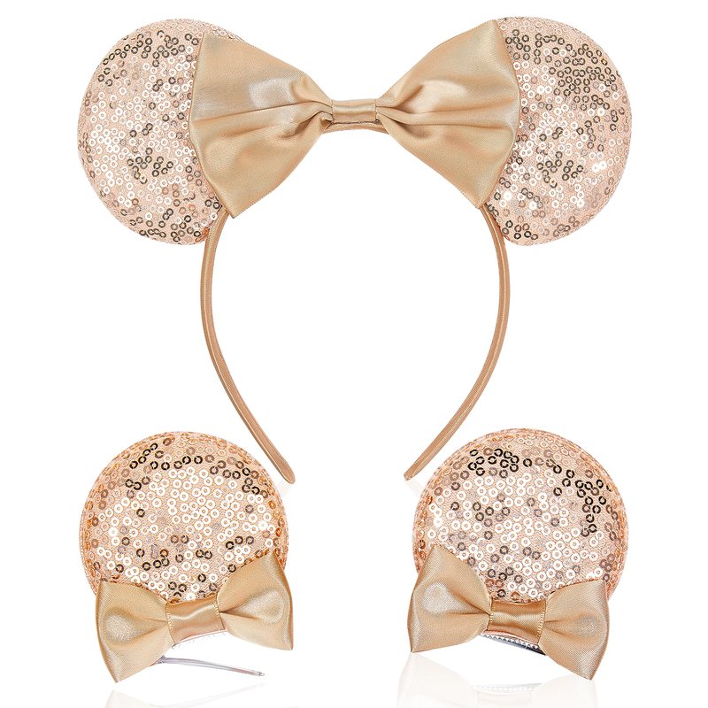 Akkya Mouse Ears Headband Hair Clips Accessories for Women Girl Kid Adult Birthday Party Princess Park Costume Mini Bow Gift Glod