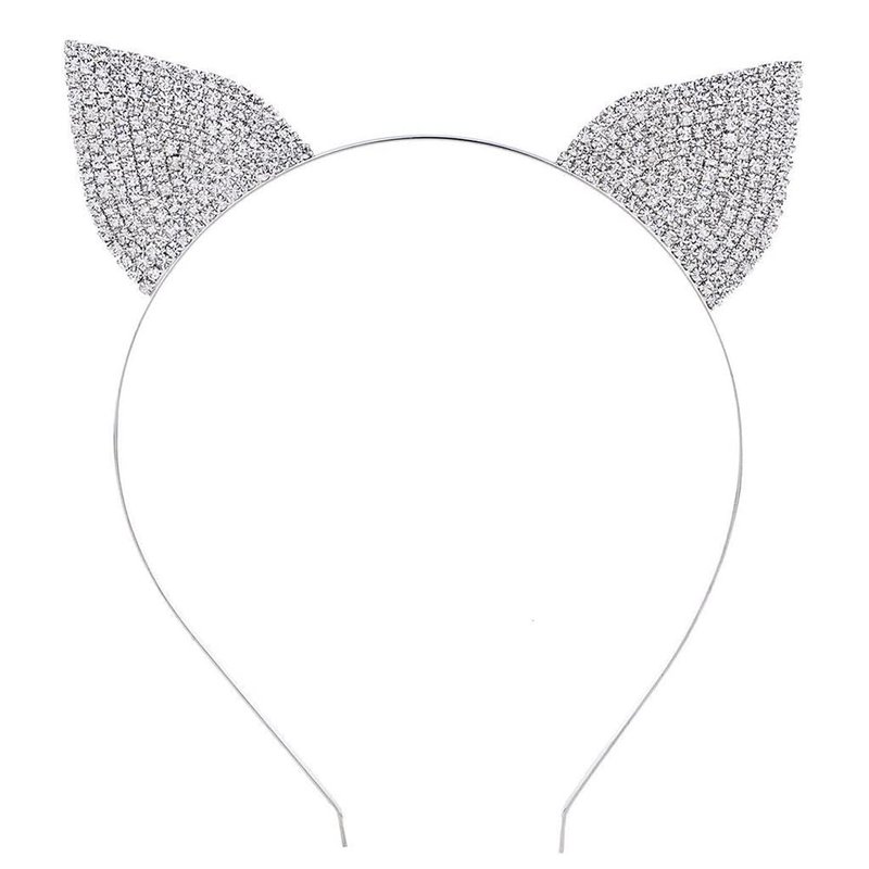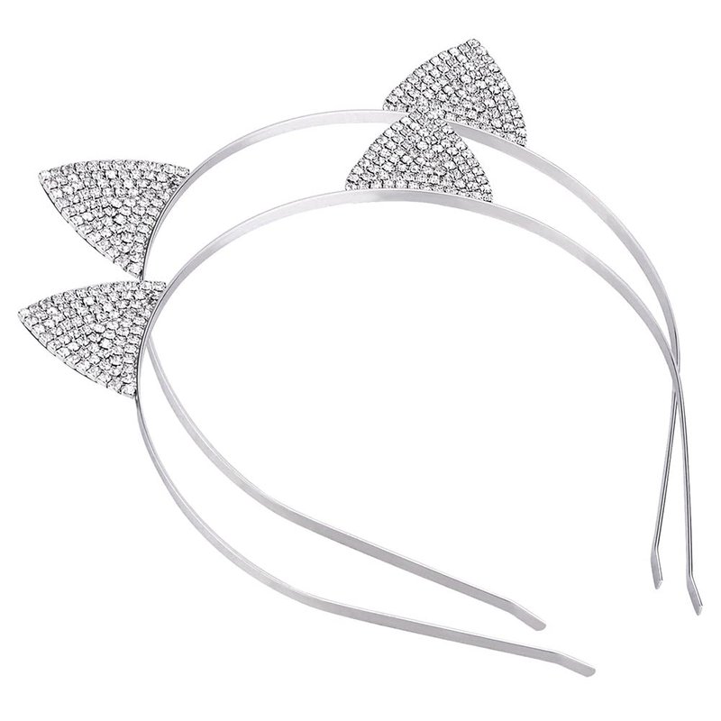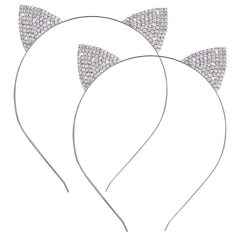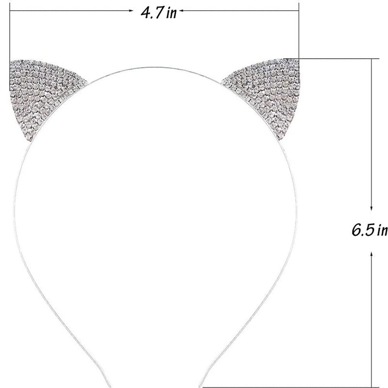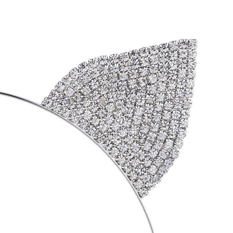 AKOAK 1 Pack Crystal Rhinestone Metal Cat Ear Headband - Amazing Crystal Party Decorations Halloween Cosplay Costume Cat Ear Headpiece (Silver)