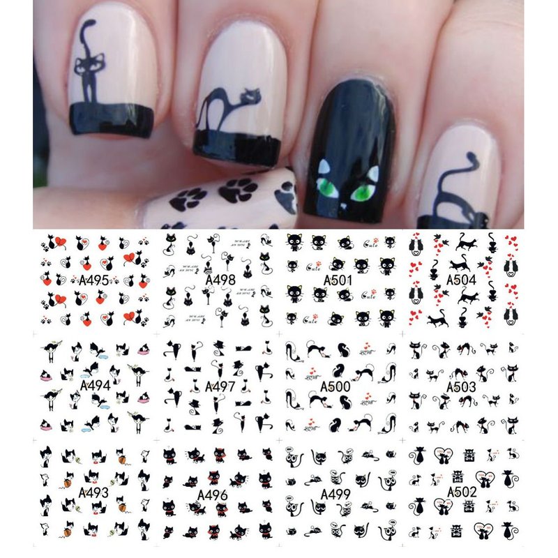- The package includes: 12 different styles of cat pattern nail stickers.