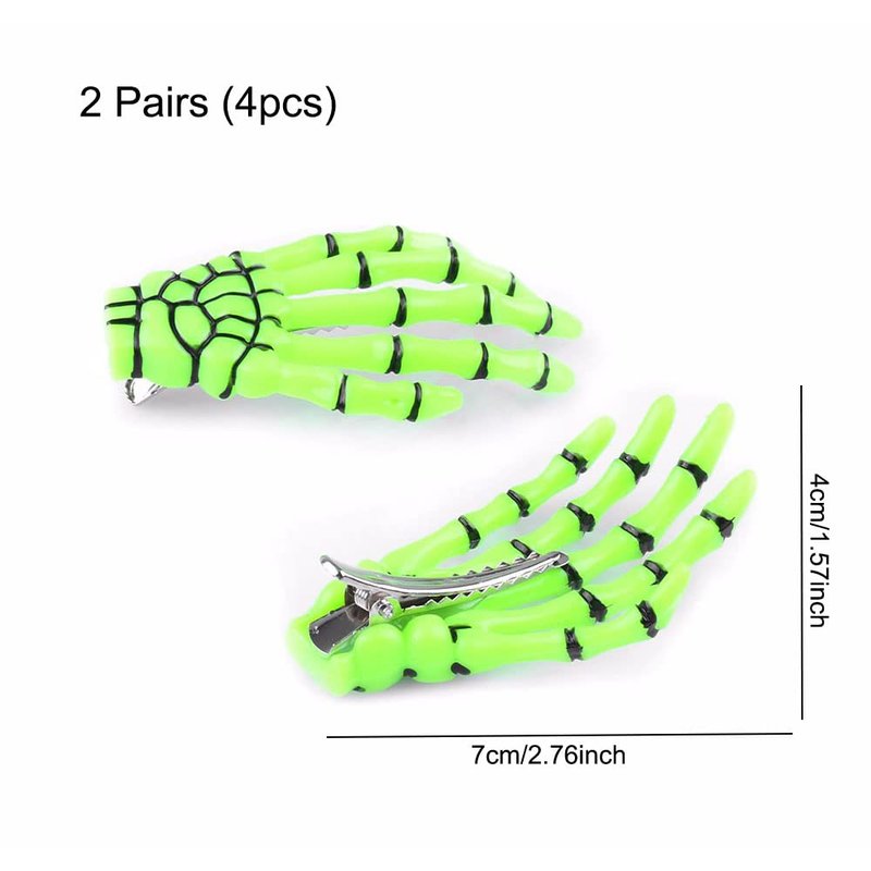 AKOAK 2 Pairs (4 Pcs) Halloween Hair Clip with Skeleton Hand Claw, Female Hair Styling Accessories for Girls (Green)