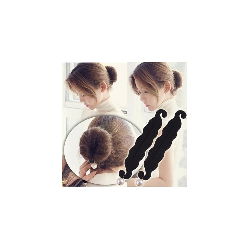 AKOAK 2 Pcs Elegant Pearl Magic French Twist Bun Maker Clip Hook Holder Magic Beauty Hair Hairstyle Foam Sponge Donut Maker Ponytail Bun Maker Twister Hairstyle Styling Tool Accessories