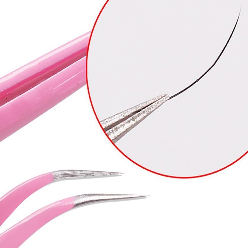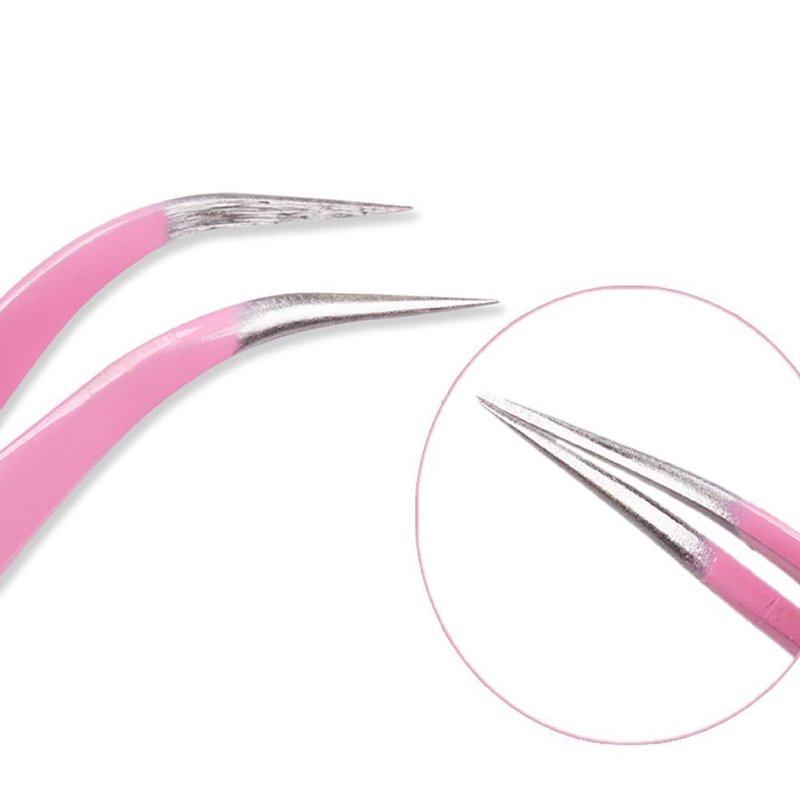 AKOAK 2 Pieces Stainless Steel Tweezers for Eyelash Extension - Straight and Curved Tip Tweezers - Pink