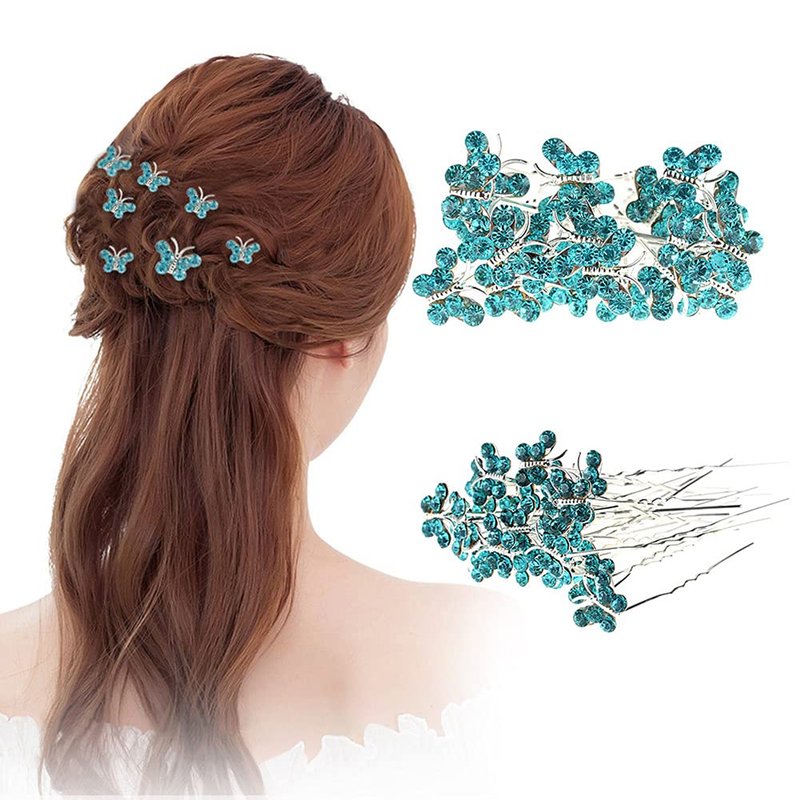 AKOAK 20 Pcs U-shaped Butterfly Rhinestone Hair Clip Crystal Hair Accessories Rhinestone Wedding Hair Clip for Bridal Wedding Party Girls (Light Green)