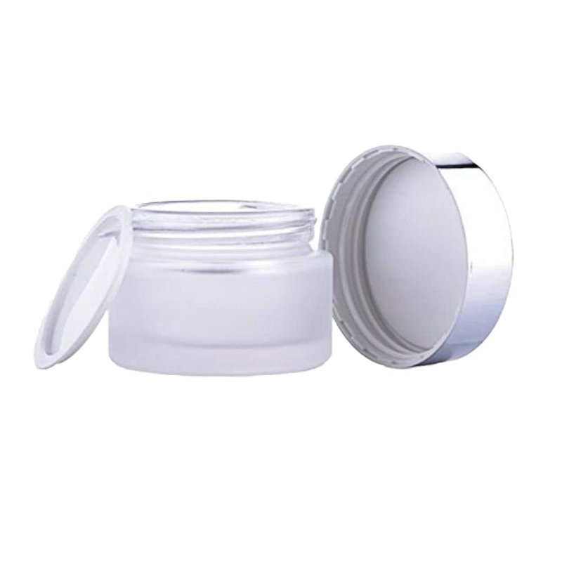 AKOAK 3 PCS 20g Refillable Frosted Glass Cosmetic Cream Jar Bottle Container with Silver Alumite Lids
