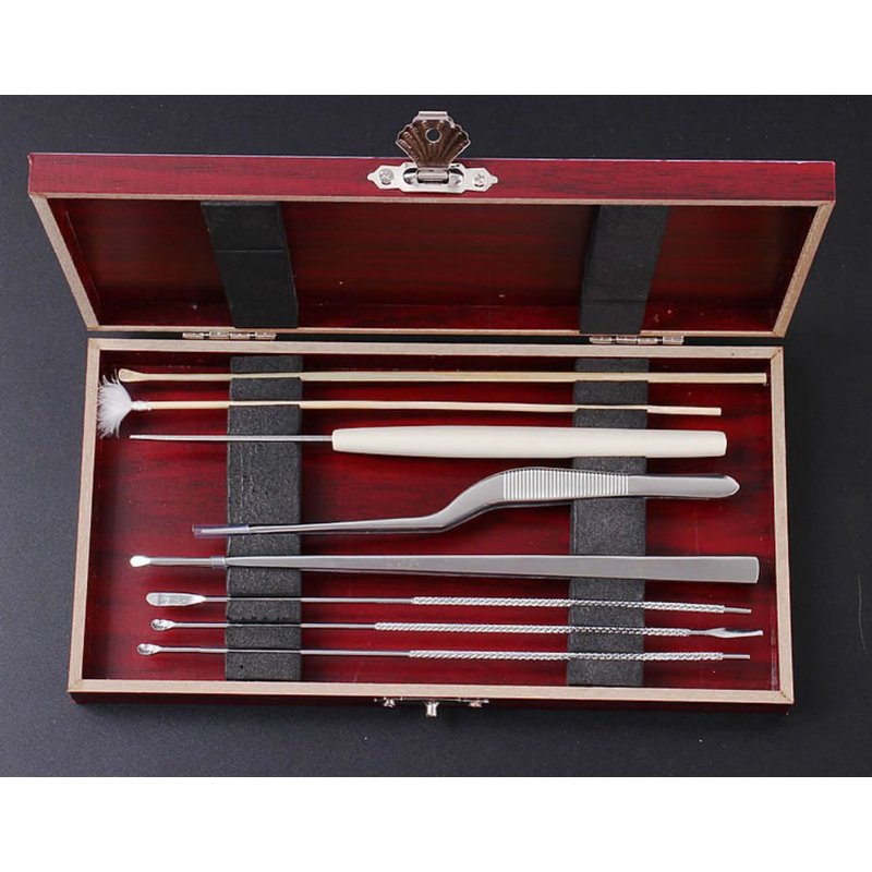 Size: 18 * 9.8 * 2.5 cm Pick ears 8 sets:2 pc stainless steel ear spoon,luminous ear curette,stainless steel,stainless steel tweezers,ear knife,goose feather stick,bamboo ear spoon.