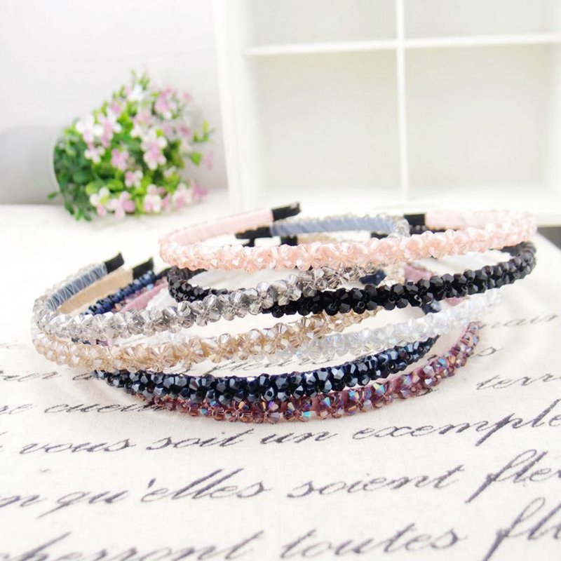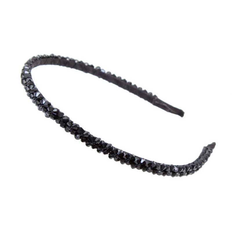 AKOAK Fashion Super Shiny Women Two Rows Black Crystal Beads Headband Girls Headwear Rhinestone Beaded Hair Band Hair Accessories