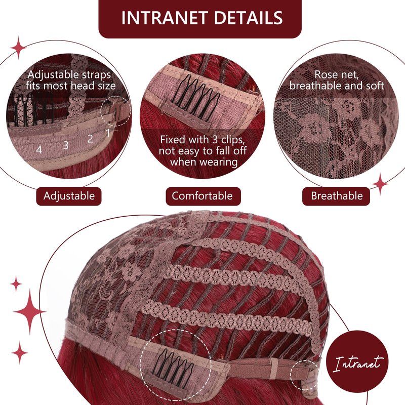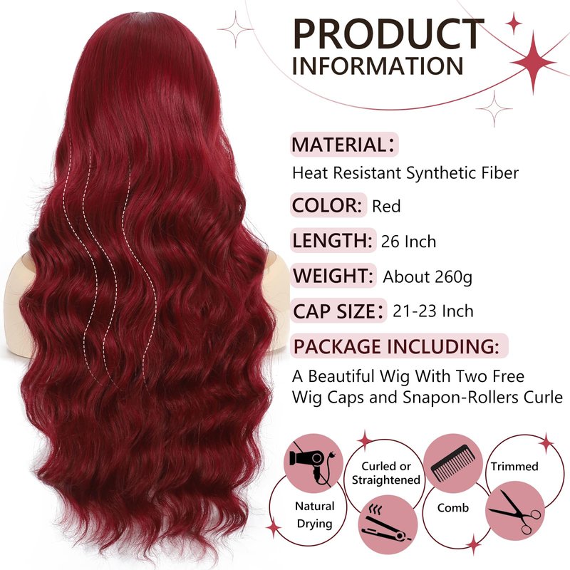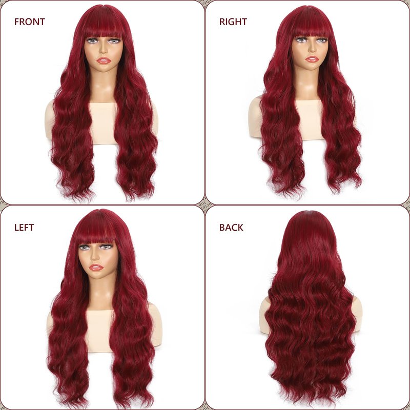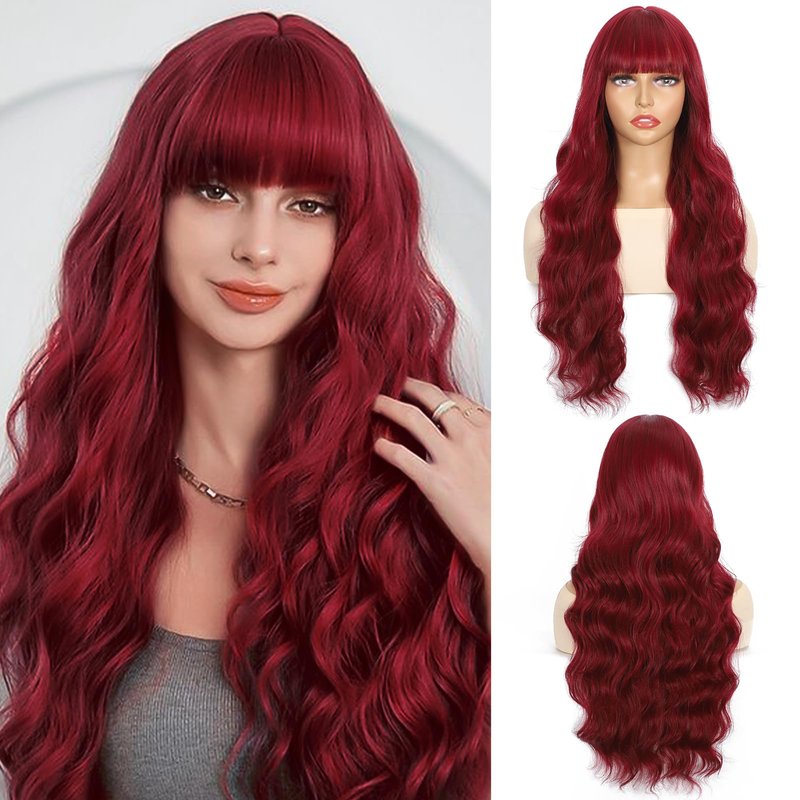 - Perfect Styling:This Burgundy wig with bangs has a charming long wave shape,suitable for any face shape.Wearing it allows you to easily navigate any place,showcasing your confidence and unique temperament. When you receive it, you will be amazed by its soft and thick texture and vibrant colors.Paired with a moderate length bangs, you will look more beautiful and youthful.