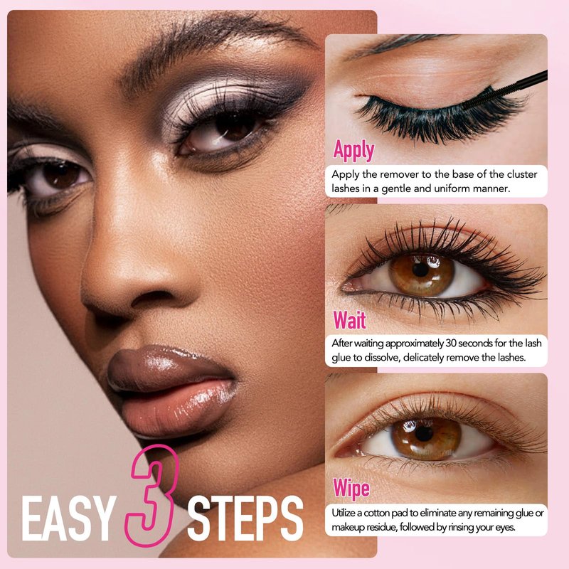 - EASY TO USE:To begin, apply the lash bond and seal remover directly to the base of the cluster lashes, ensuring thorough coverage. Allow the cluster lash remover to sit for 30 seconds, allowing the eyelash glue to dissolve effectively. Next, gently use a cotton swab or mascara brush to brush off the clusters, ensuring complete removal. Finally, rinse your lashes meticulously with lash cleanser and water to leave them clean and refreshed.