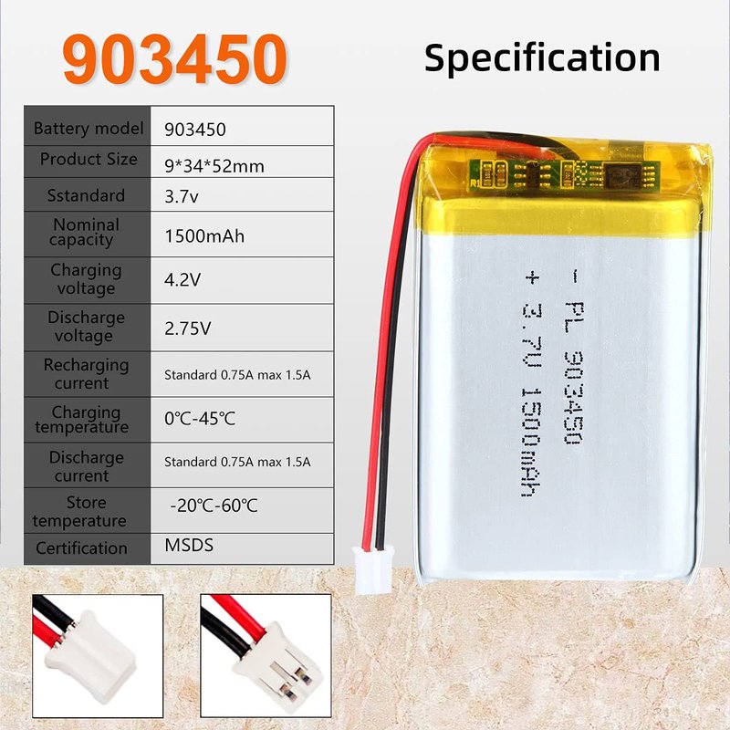 AKZYTUE 3.7V 1500mAh 903450 Lipo Battery Rechargeable Lithium Polymer ion Battery Pack with JST Connector