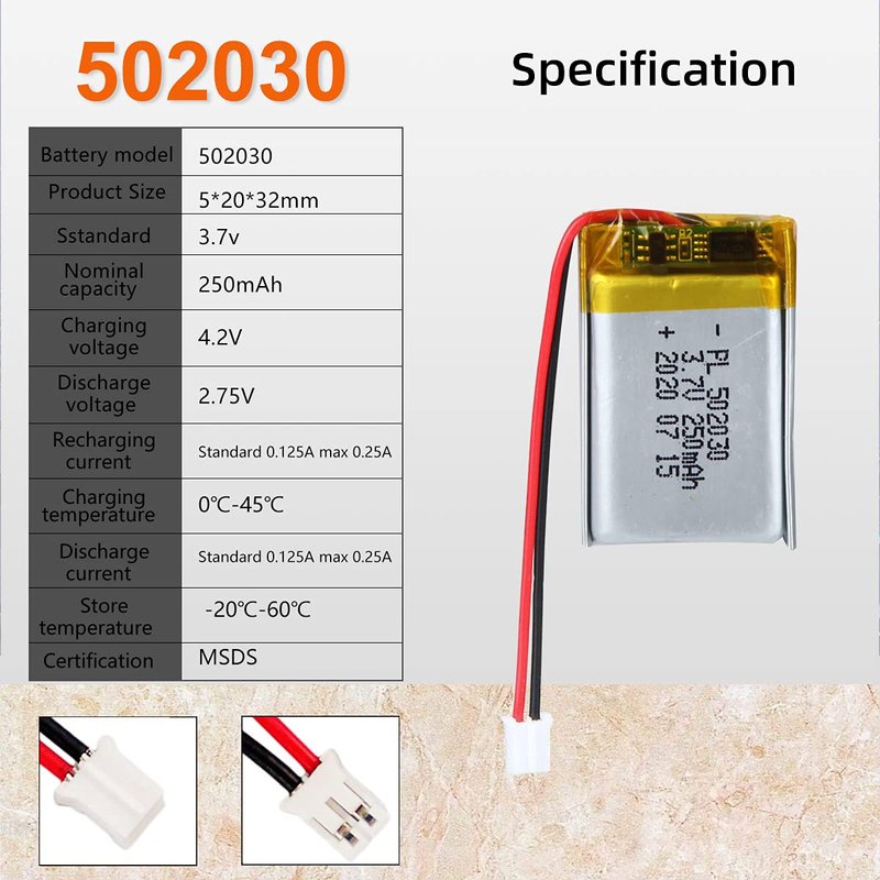 - NOTE: The 3.7V 250mAh 502030 Lithium Battery is NON-POWER BATTERY! ! ! It can not be used for power device that require high current such as UAV, Model aircraft , Electric toys, Power tools and other.