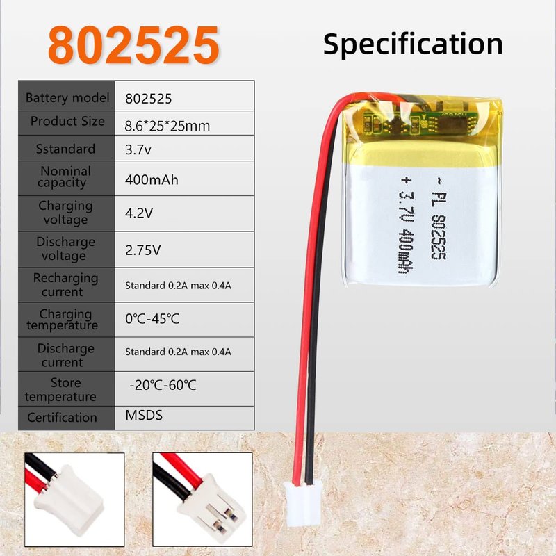 - Size: 400mAh 802525