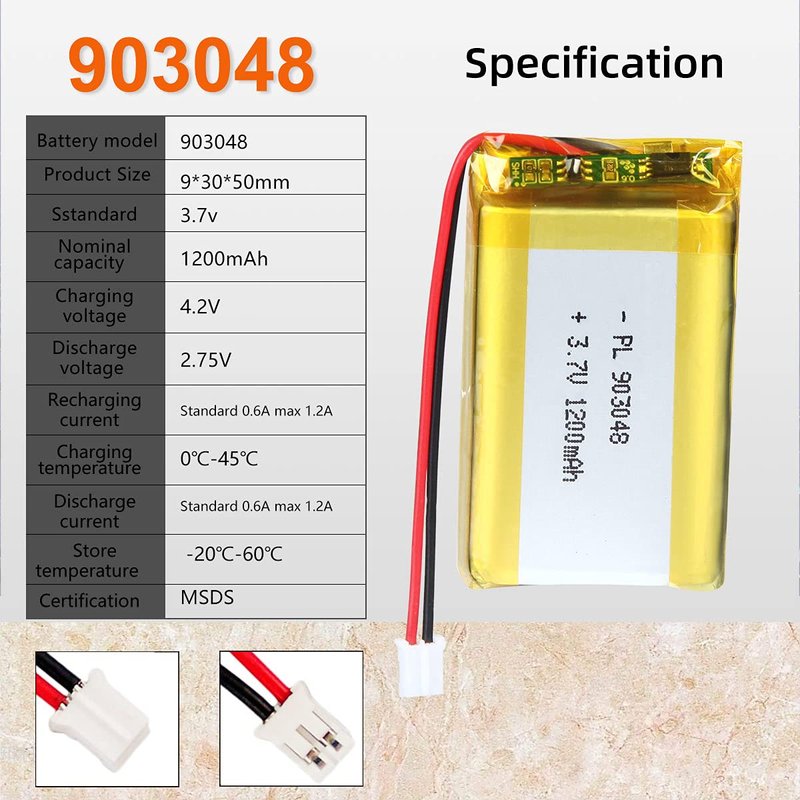 - NOTE: The 3.7V 1200mAh 903048 Lithium Battery is NON-POWER BATTERY! ! ! It can not be used for power device that require high current such as UAV, mini RC Helicopter,RC small drones, Model aircraft , Electric toys, Power tools and other.