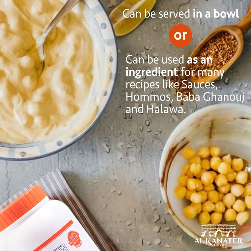 Al Kanater, Tahini Sesame Paste, 2 LB (32 Oz), 100% Natural, 100% Ground Sesame Seeds, Absence of Chemicals-No Whitening, Rich Creamy Taste for Hummus, Sauces, Baba Ghanouj and Halawa.