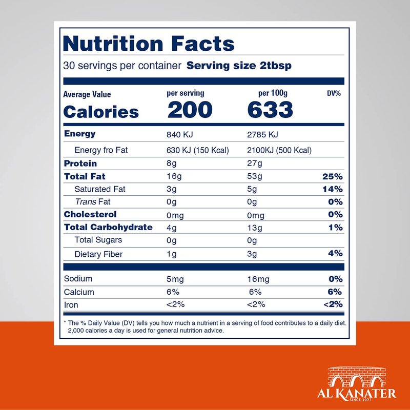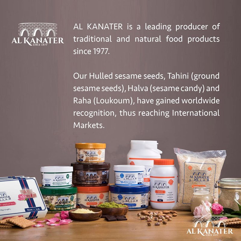 Alkanater is a famous brand for decades making top quality Tahina 100% Ground Sesame Seeds paste distributed all over the world. Tahina blended with lemon juice and olive oil is used to make sauce for Falafel. It is also used for salad dressing and