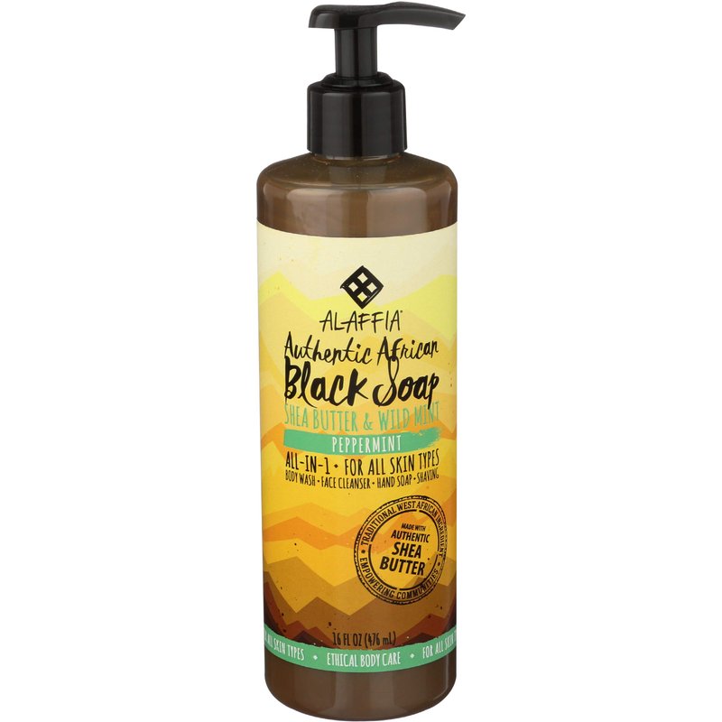 Alaffia - Authentic African Black Soap, All-in-One Body Wash, Shampoo, and Shaving Soap For All Skin and Hair Types, Fair Trade, No Parabens, Non-GMO, No SLS, Peppermint, 16 Ounce