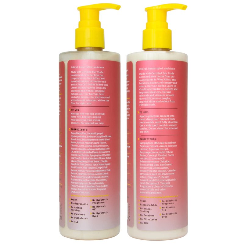- GREAT FOR CURLY TO COILY HAIR: This curly hair shampoo and leave-in conditioner set hydrates and defines tight curls using a blend of fair trade unrefined shea butter and botanical extracts of comfrey and arnica.
