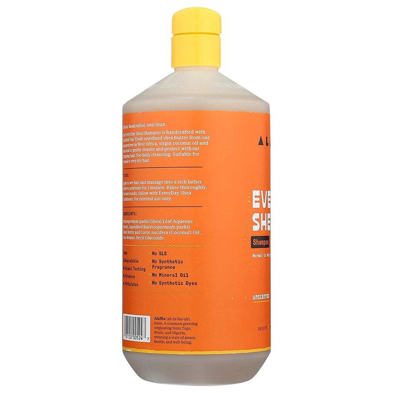 - SHEA SHAMPOO. Alaffia EveryDay Shea Shampoos are sulfate-free and clean, handcrafted with shea leaf extract, fair-trade unrefined "raw" shea butter and virgin coconut oil to gently cleanse hair and scalp, without stripping natural oils.
