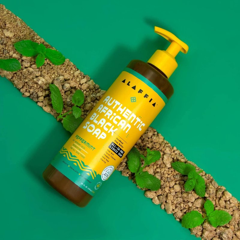 Alaffia Skin Care, Authentic African Black Soap, All in One Body Wash, Face Wash, Shampoo & Shaving Soap with Fair Trade Shea Butter, Peppermint, 16 Fl Oz