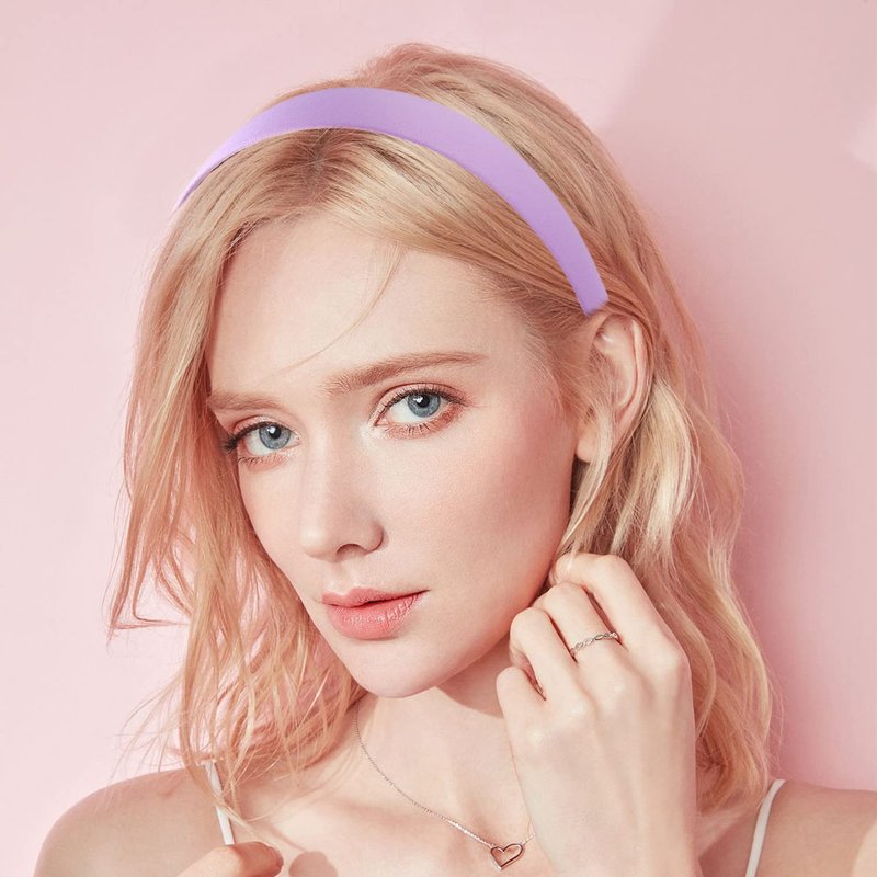 AlamnoFu 6pcs Wide Satin No Slip Headbands for Girls 1.18inches Candy Color DIY Craft Headbands for Gift(Purple Blue Pink)